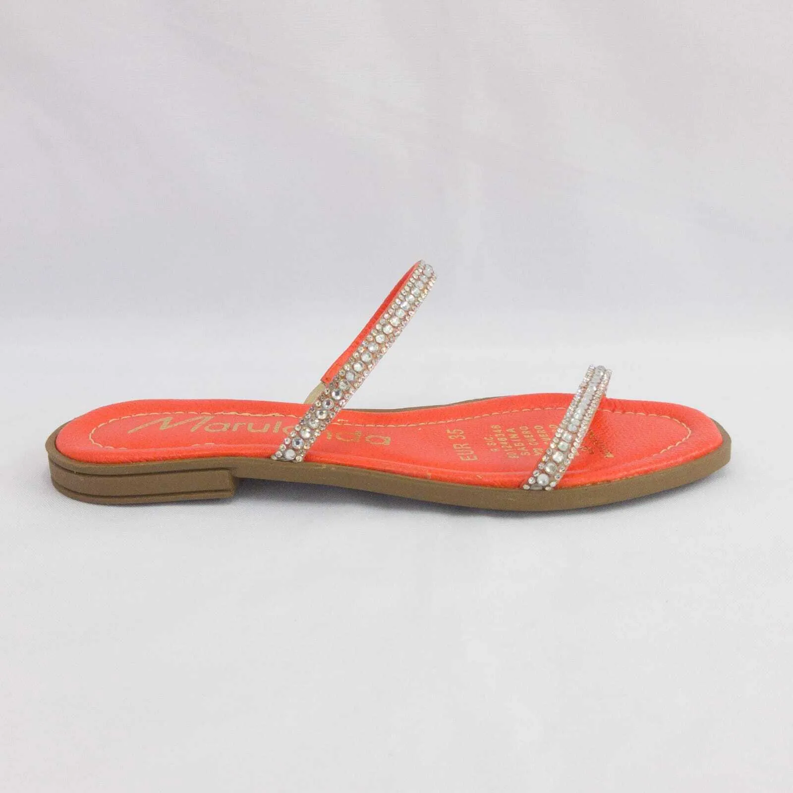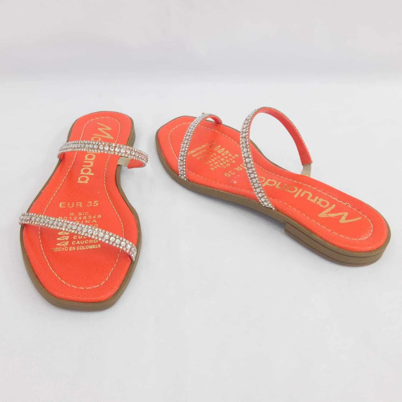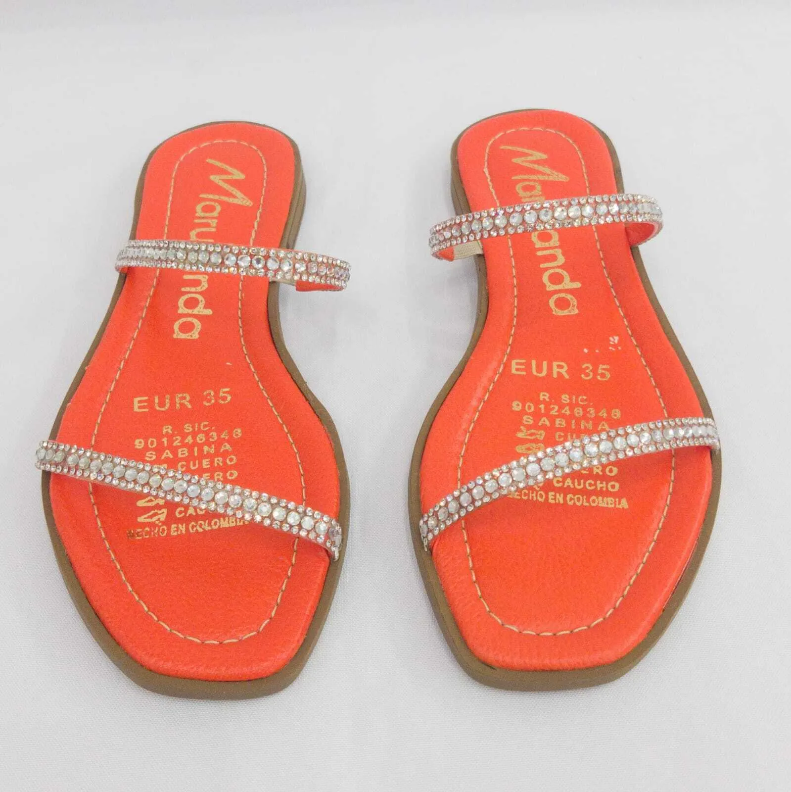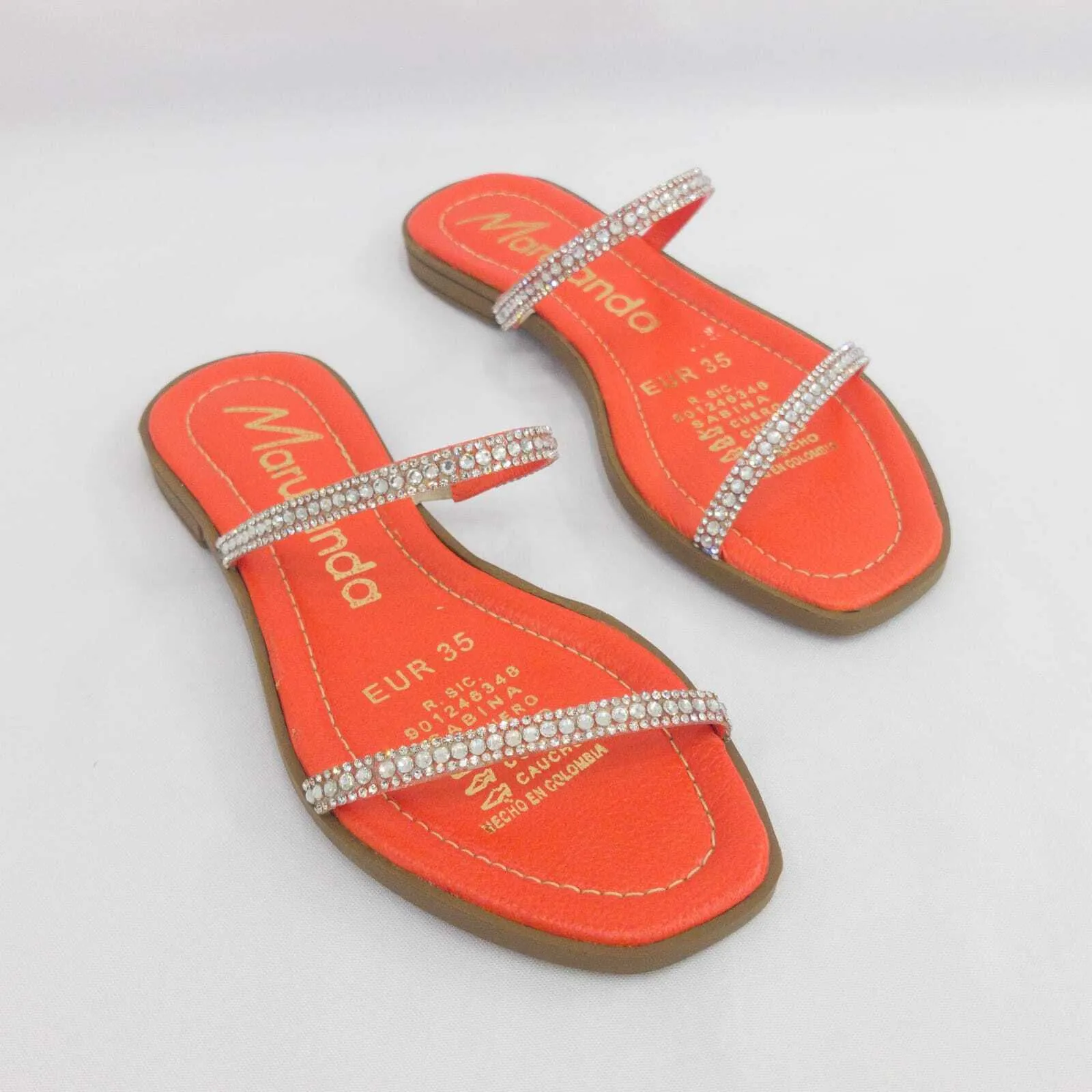 Sandalia plana sueca en cuero tipo napa color naranja.