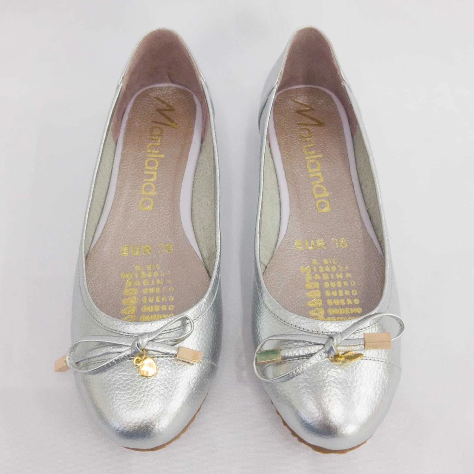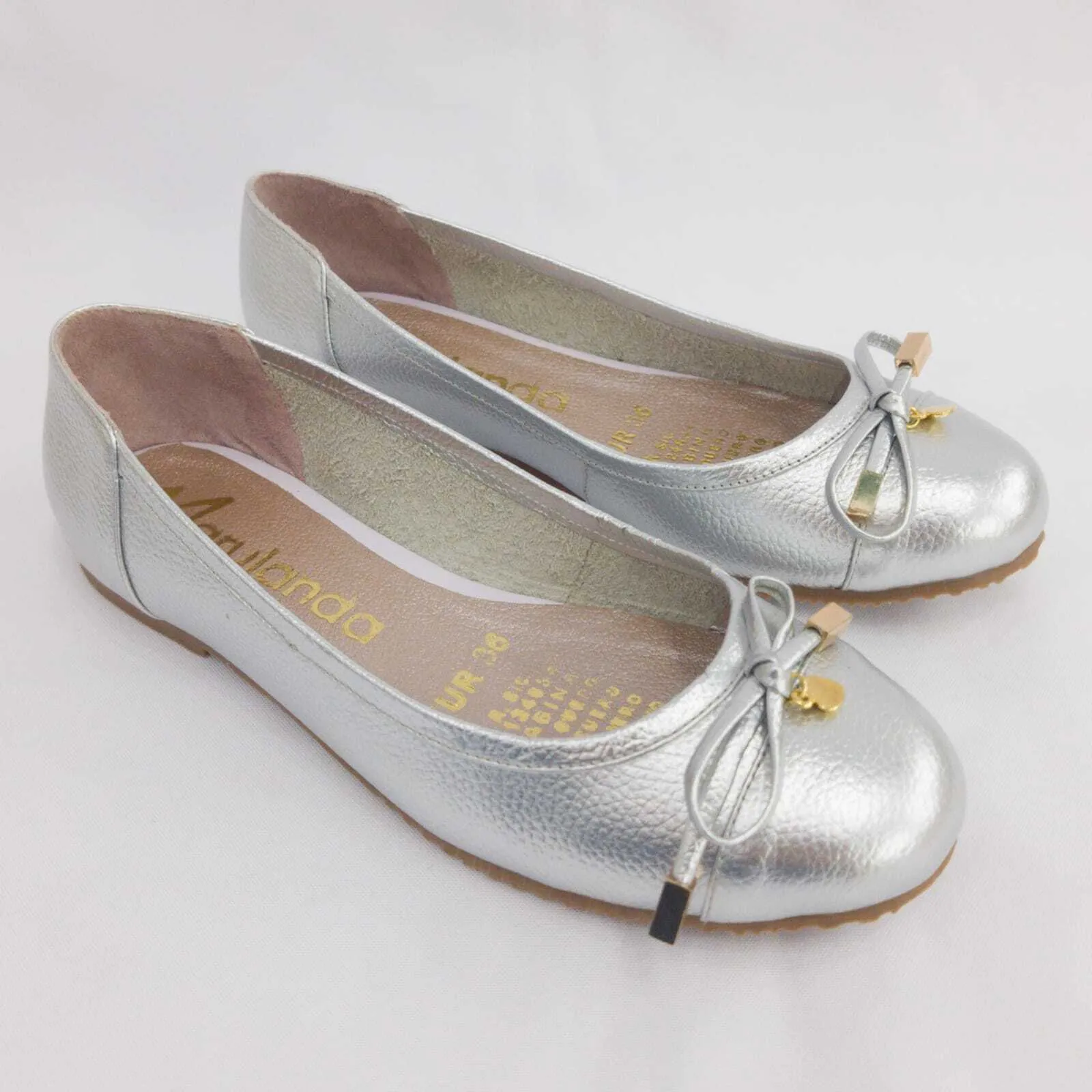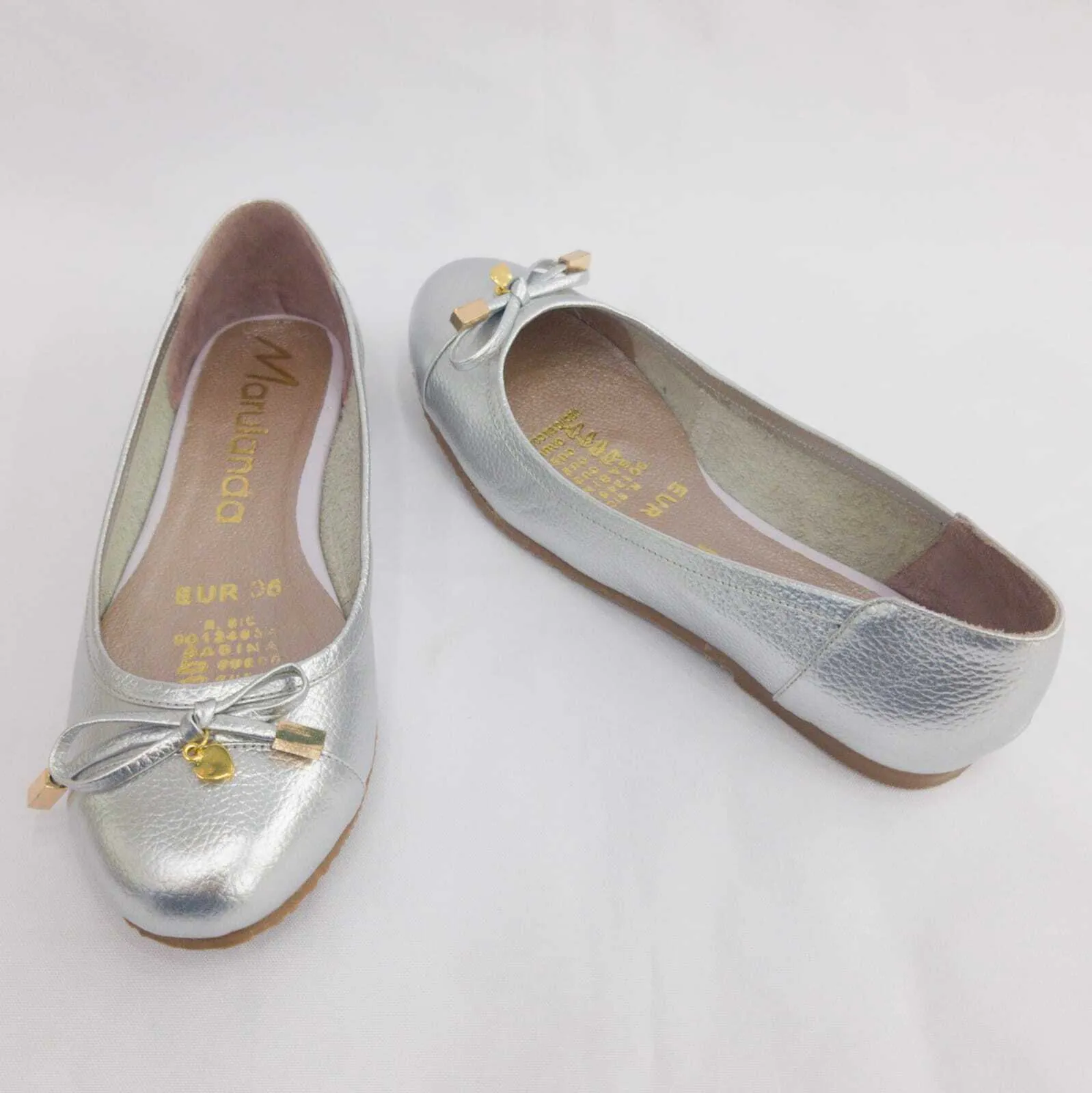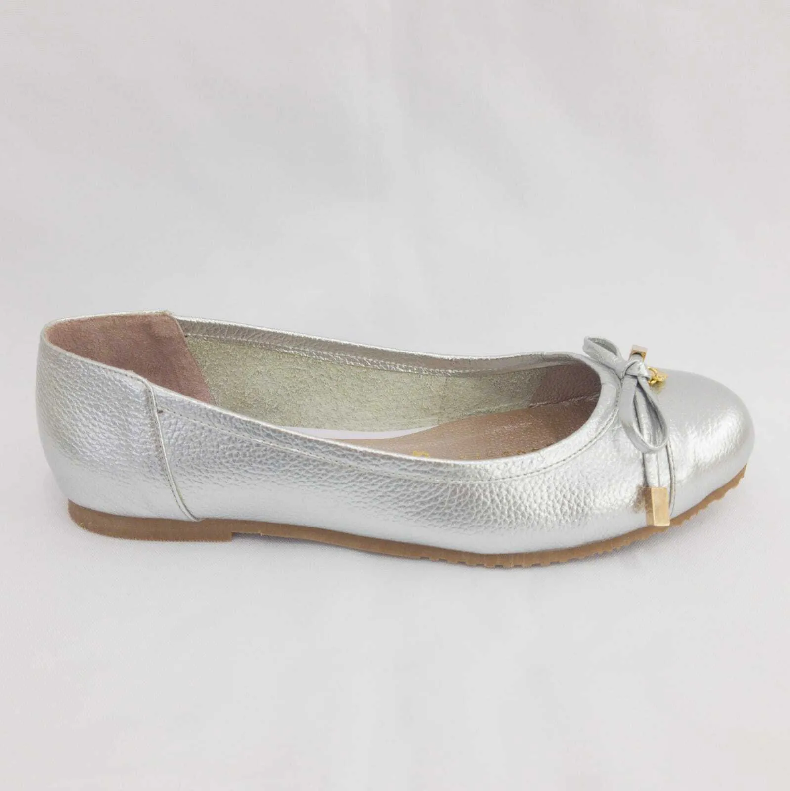 Baleta en cuero tipo napa color plata.