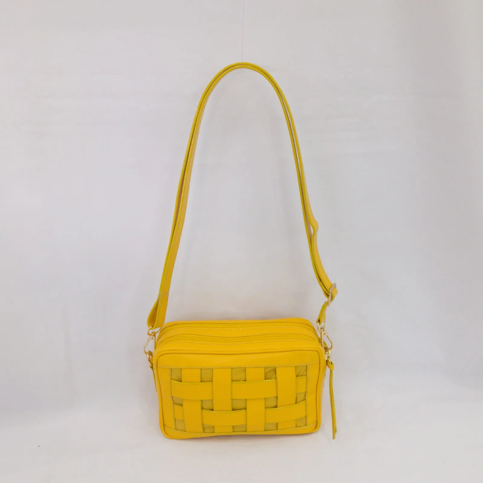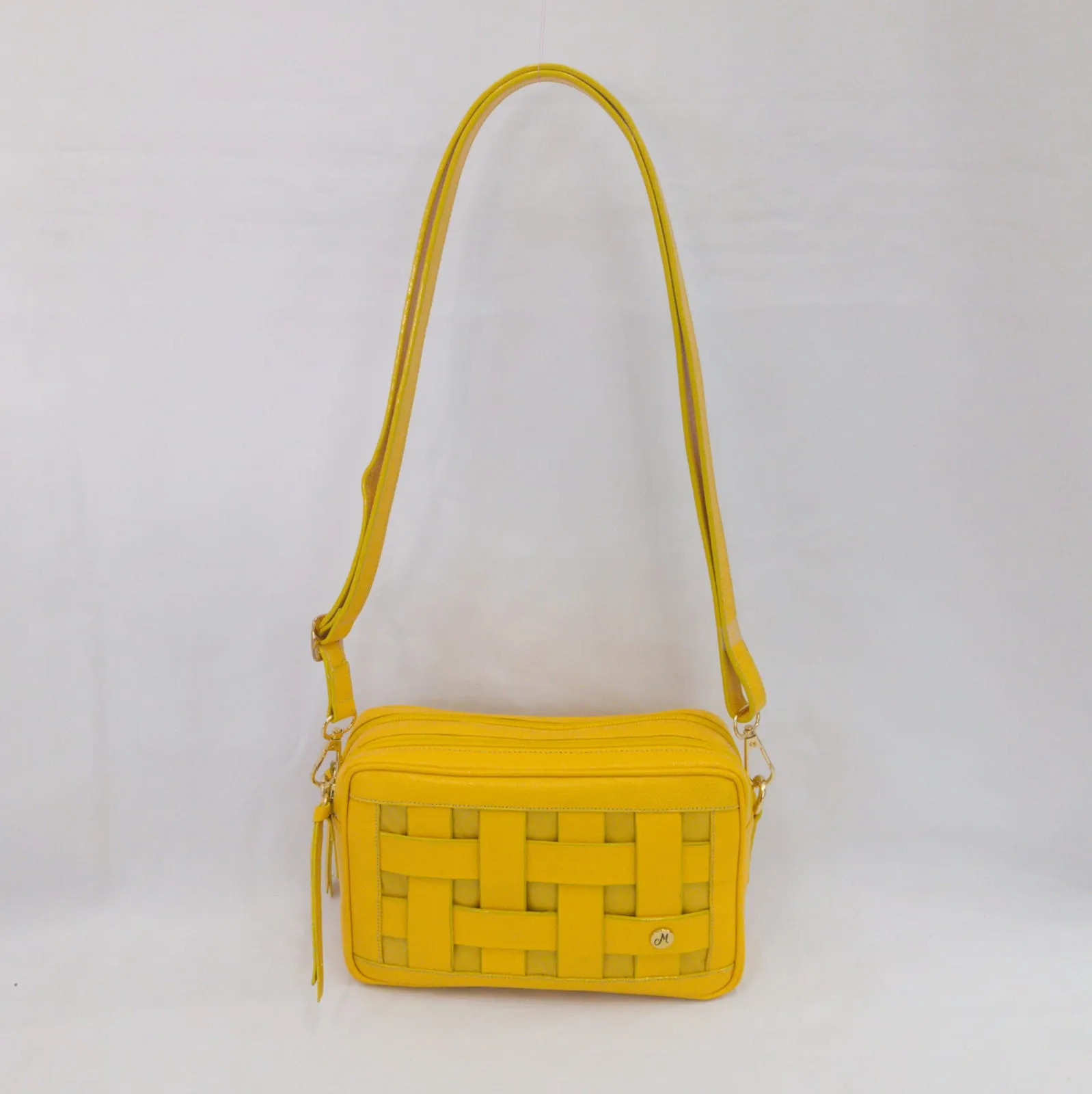 Manos libres en cuero tipo folia color amarillo.